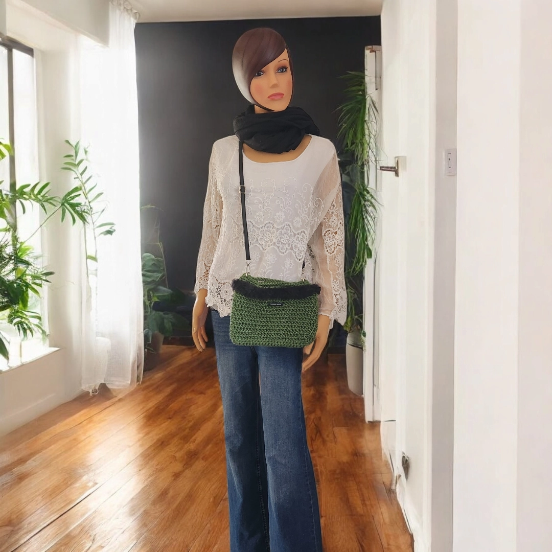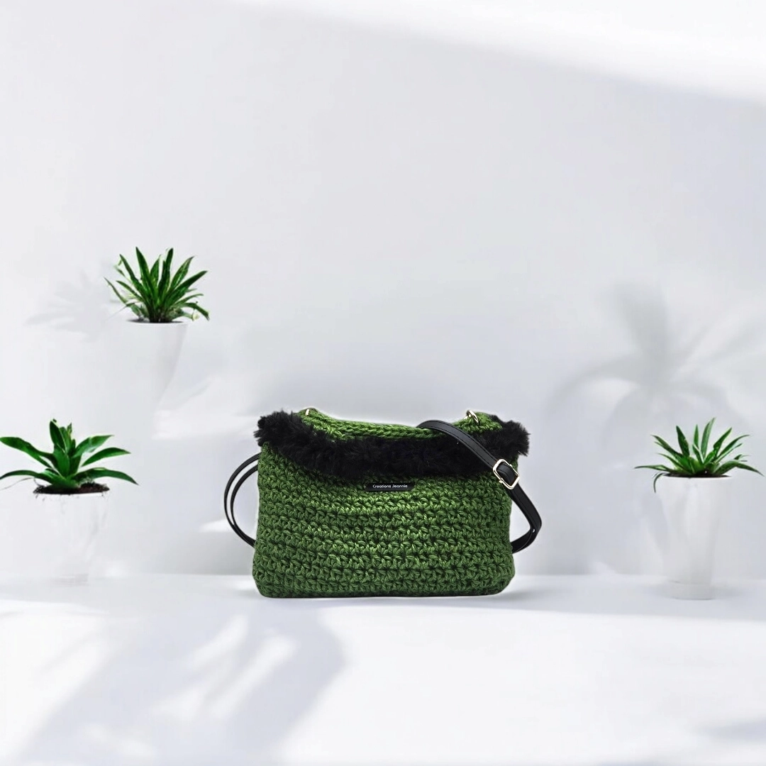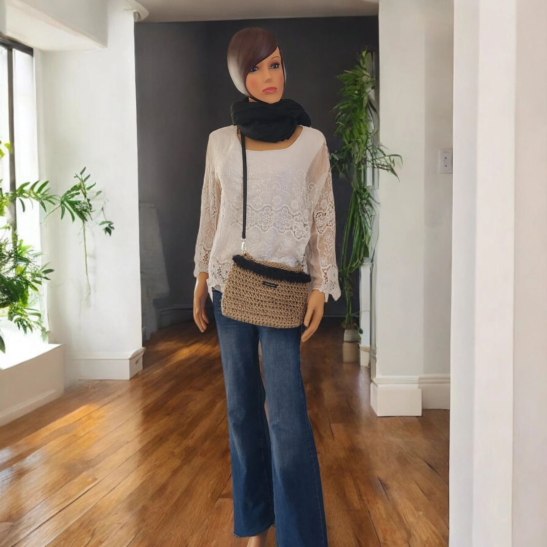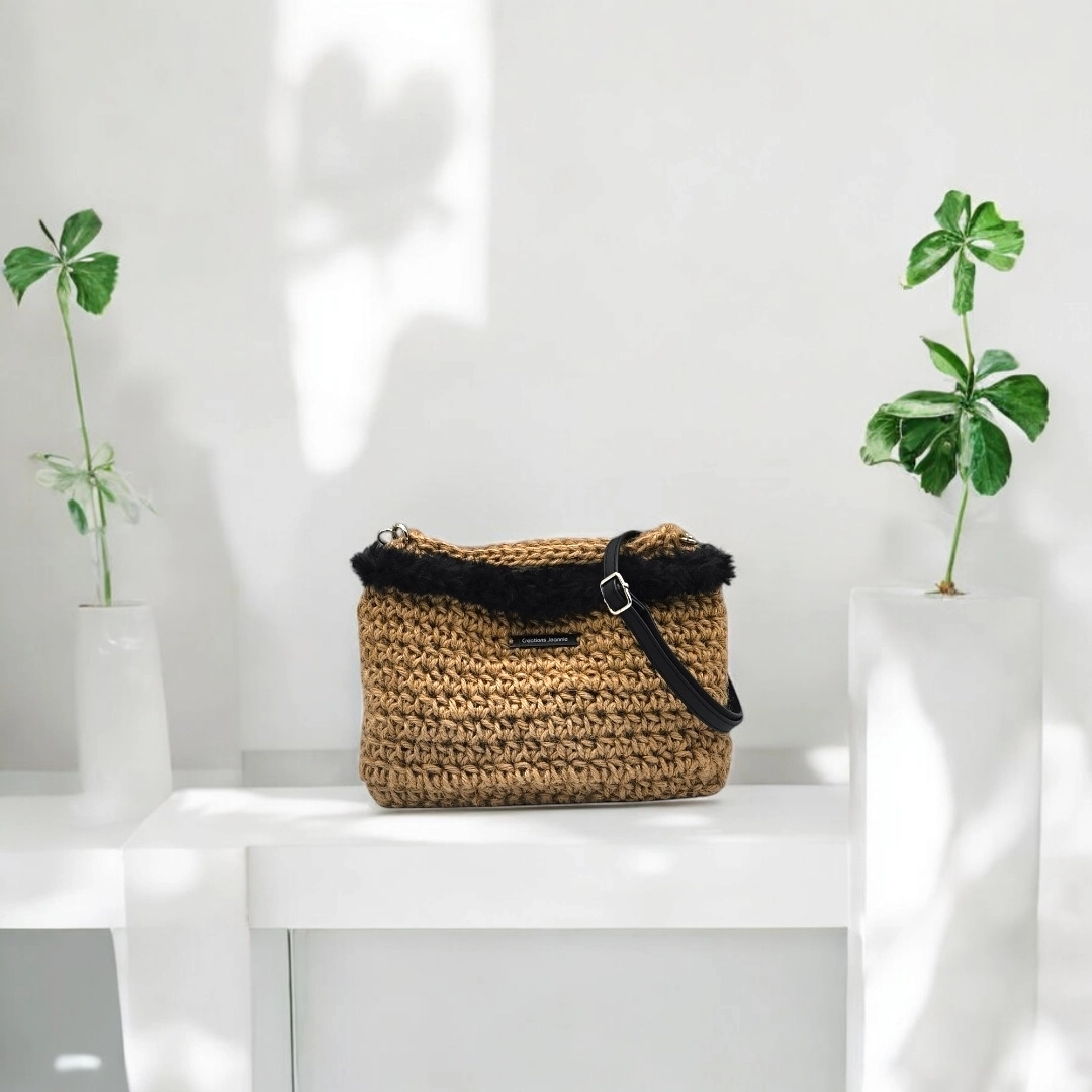 Pochette Bandoulière – Fait-main en Jute avec Fausse Fourrure