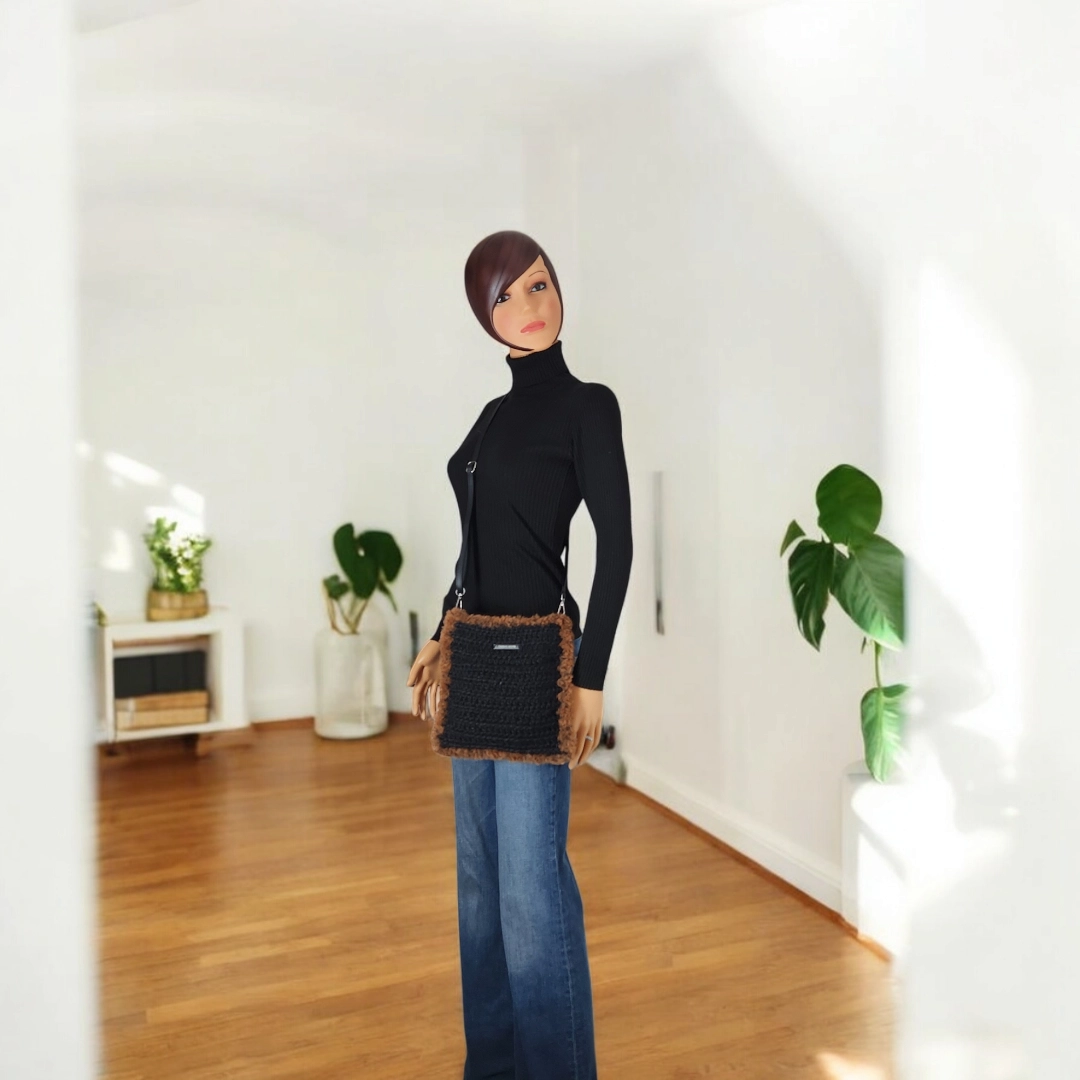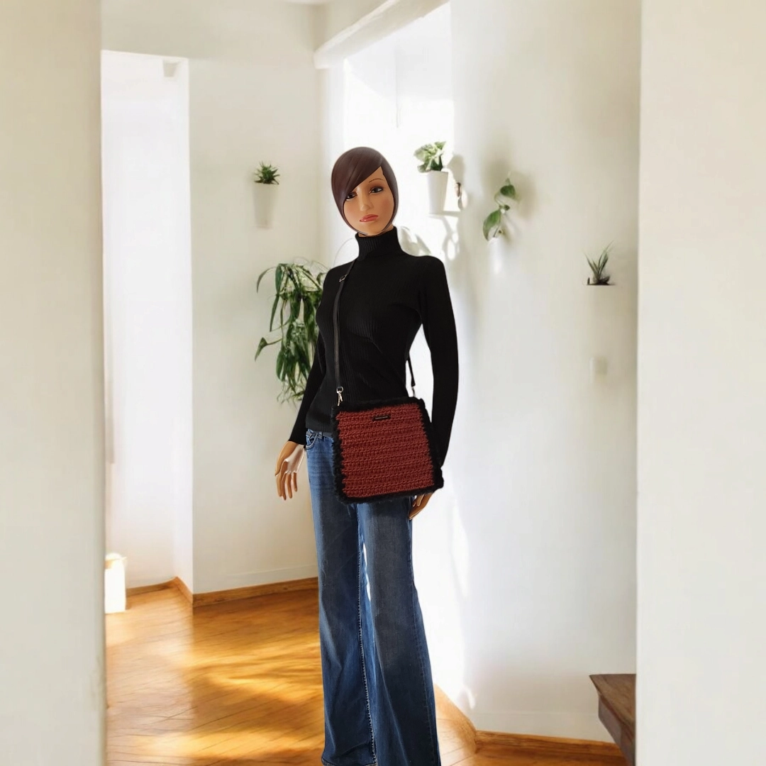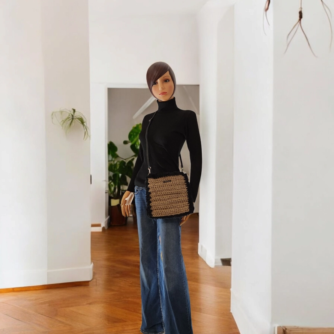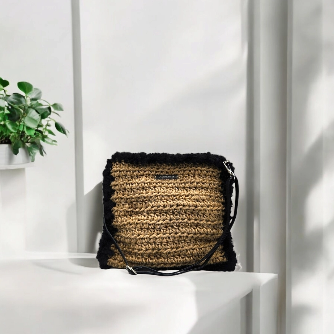 Découvrez l’authenticité et le charme de l’artisanat avec cette pochette bandoulière crochetée à la main en ficelle de jute, élégamment gansée de fausse fourrure. Pensée pour les amatrices de mode écoresponsable, cette pochette se distingue par son allure chic et bohème, parfaite pour un look décontracté ou raffiné.