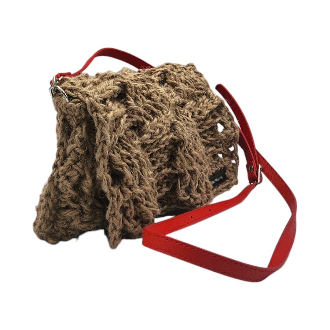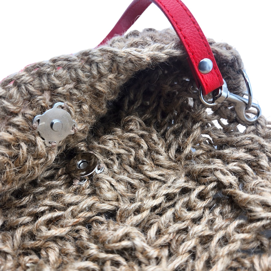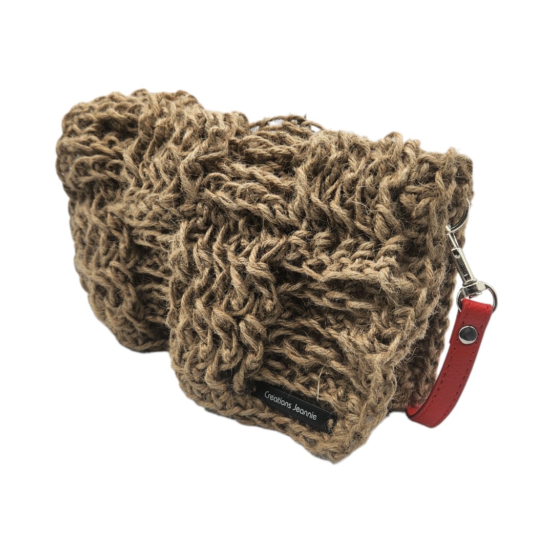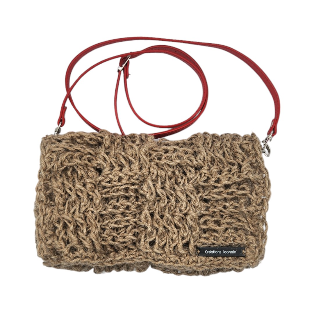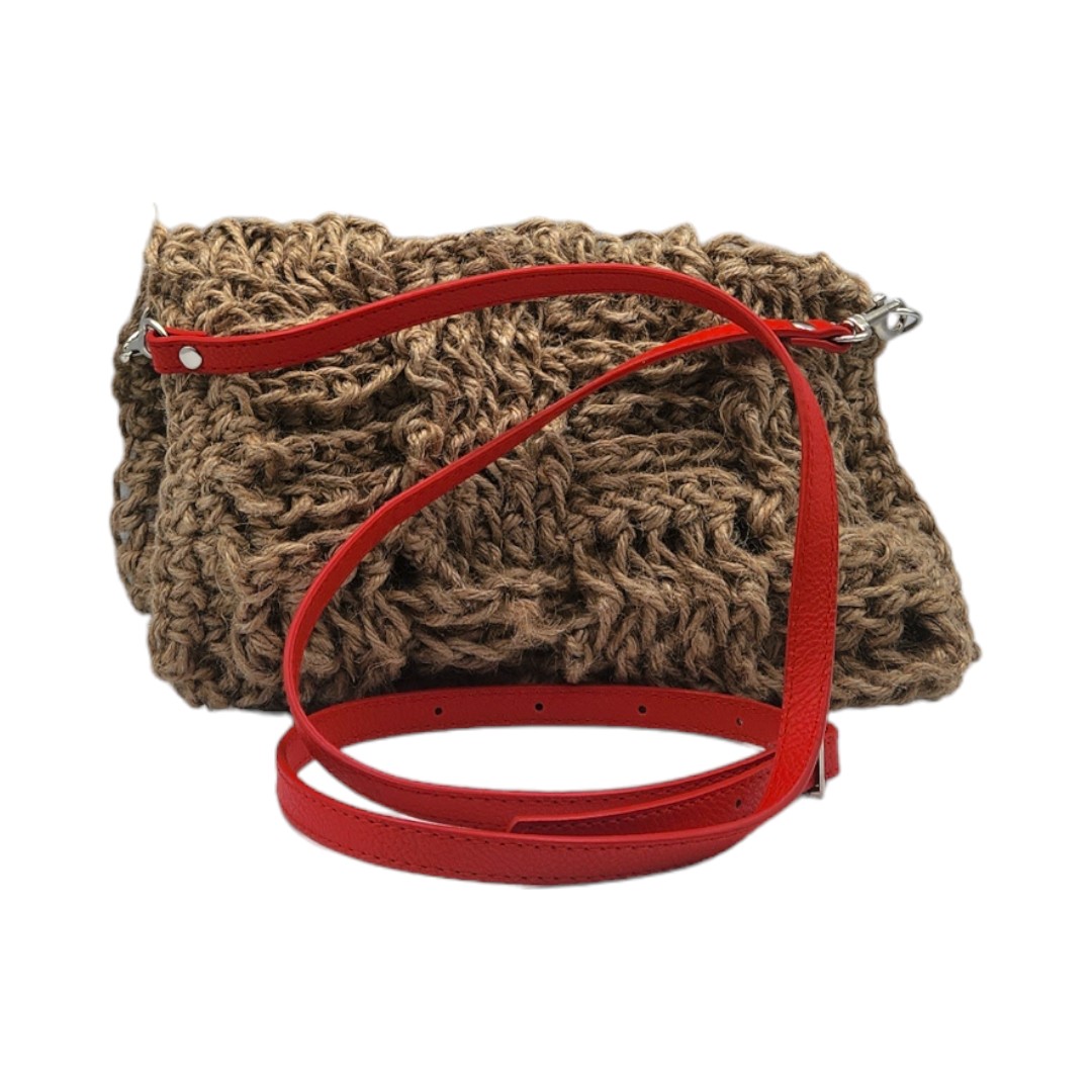 couverture de la vidéo de présentation pour une Pochette besace crochetée en ficelle de jute beige avec anse bandoulière en cuir rouge