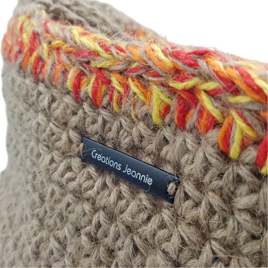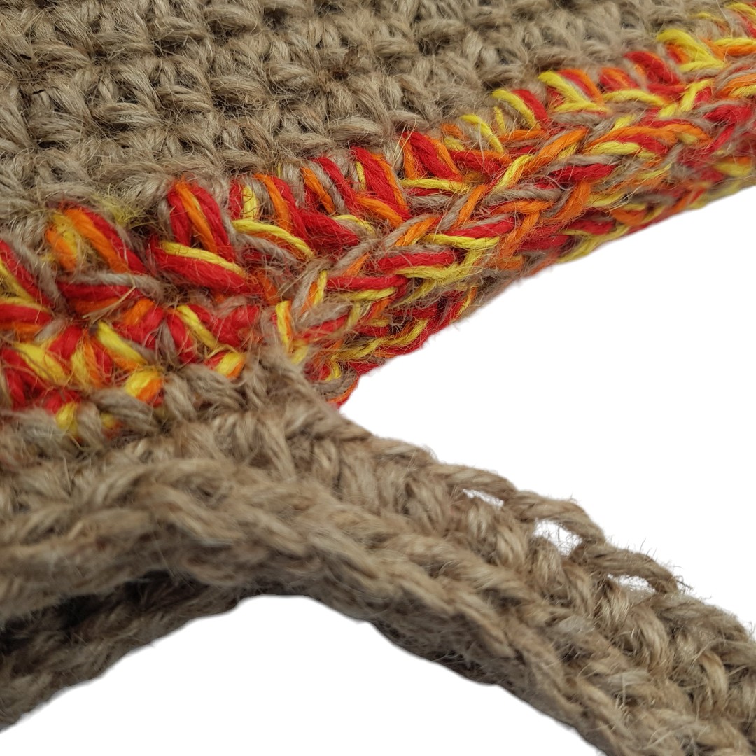 La fibre naturelle de la ficelle peut provoquer de légères variations de couleurs et contenir des impuretés, malgré le soin apporté dans le choix des matières 1ères. De plus, la ficelle peut perdre quelques fibres et dégager une odeur, ce à quoi certaines personnes peuvent être sensibles.