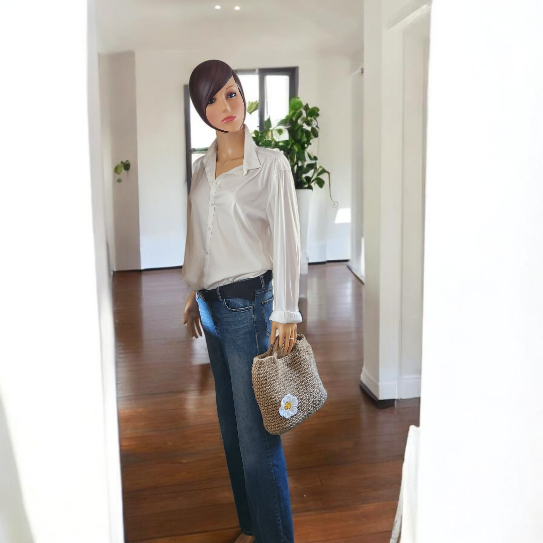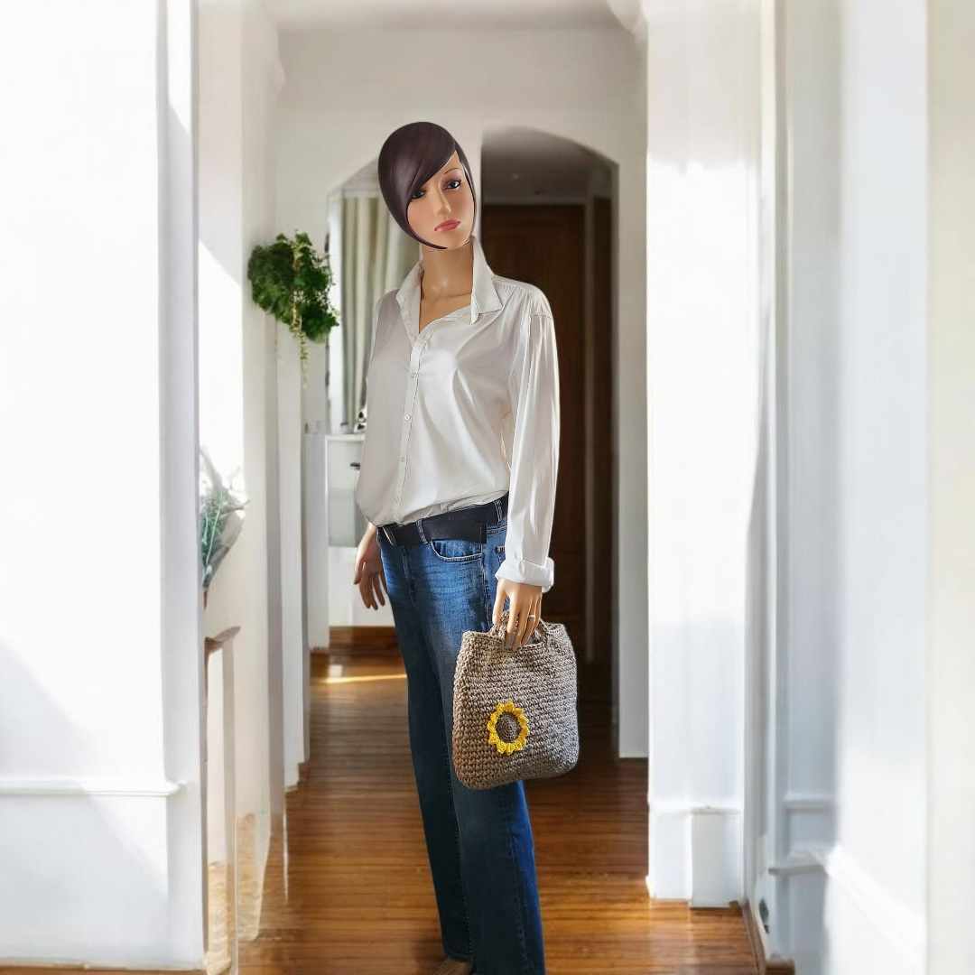 Chaque sac est une pièce unique, décorée d’une fleur crochetée qui apporte une touche de fraîcheur et de personnalité à votre tenue : marguerite, tournesol ou coquelicot… à vous de choisir votre humeur du jour.