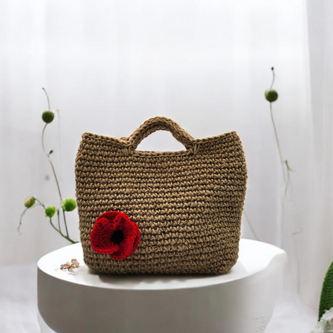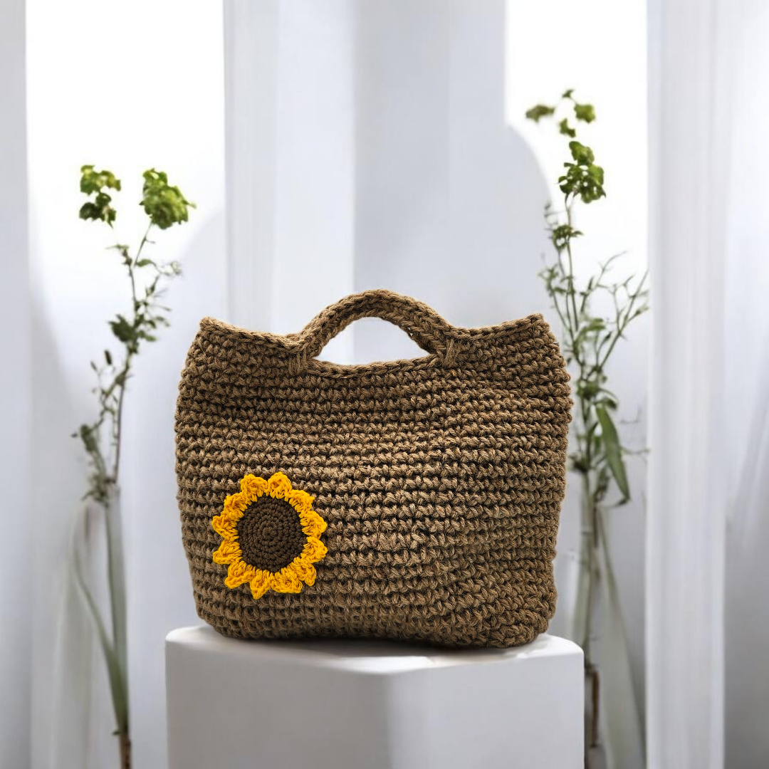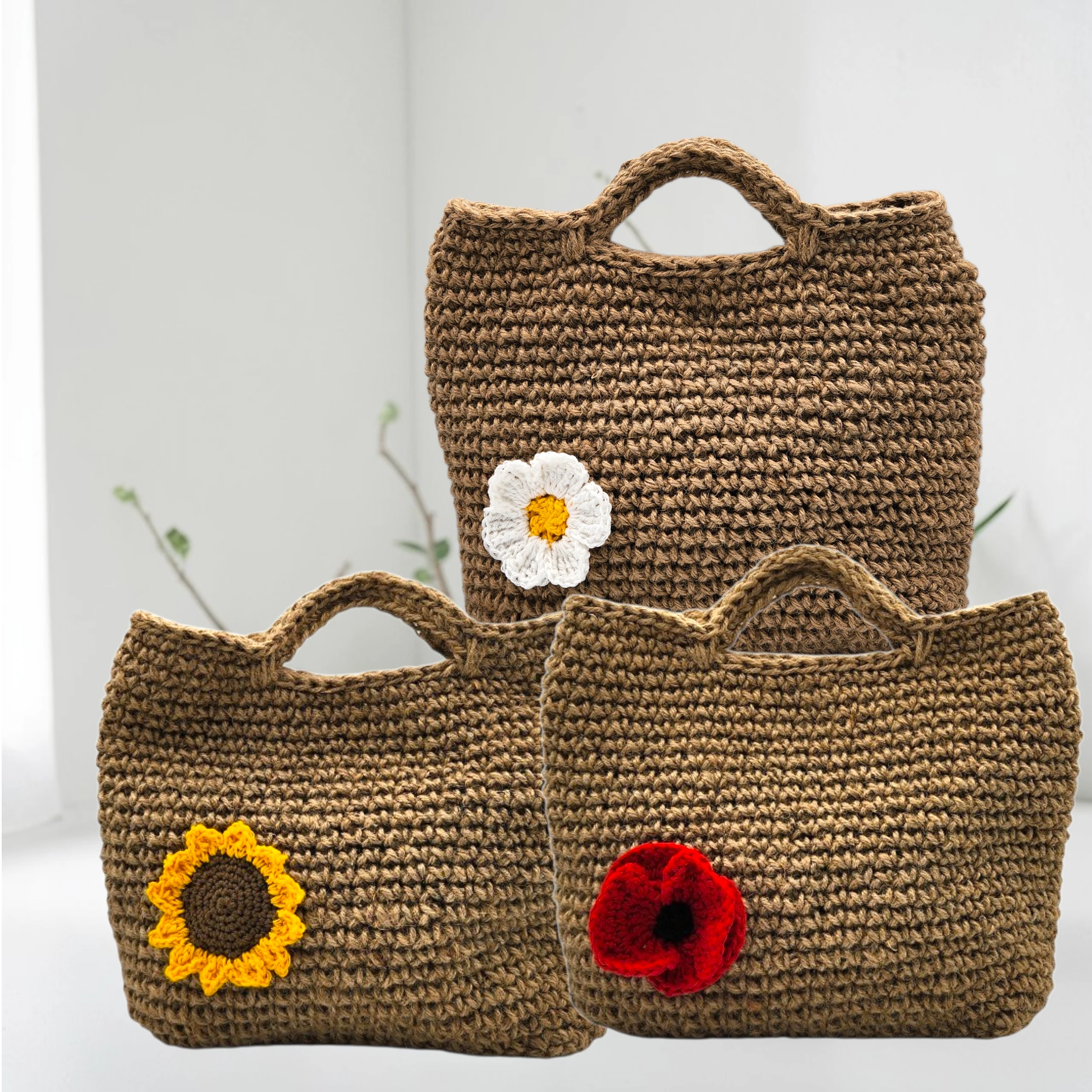 Sac crochet fleuri en jute | Marguerite, Tournesol & Coquelicot