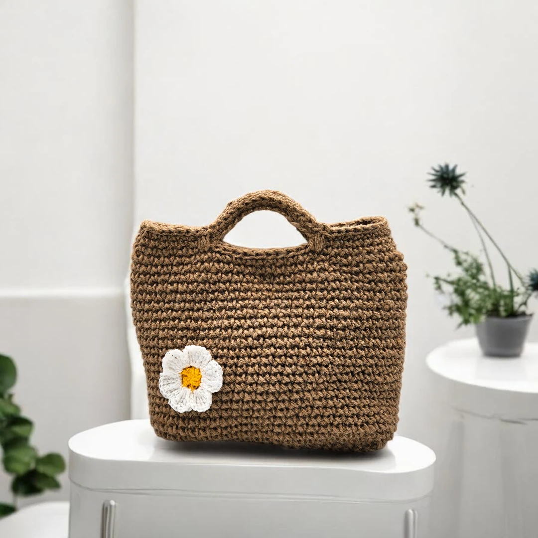 Craquez pour un sac Primavera, des sacs crochetés à la main en ficelle de jute, inspirés par la beauté simple et poétique des fleurs.