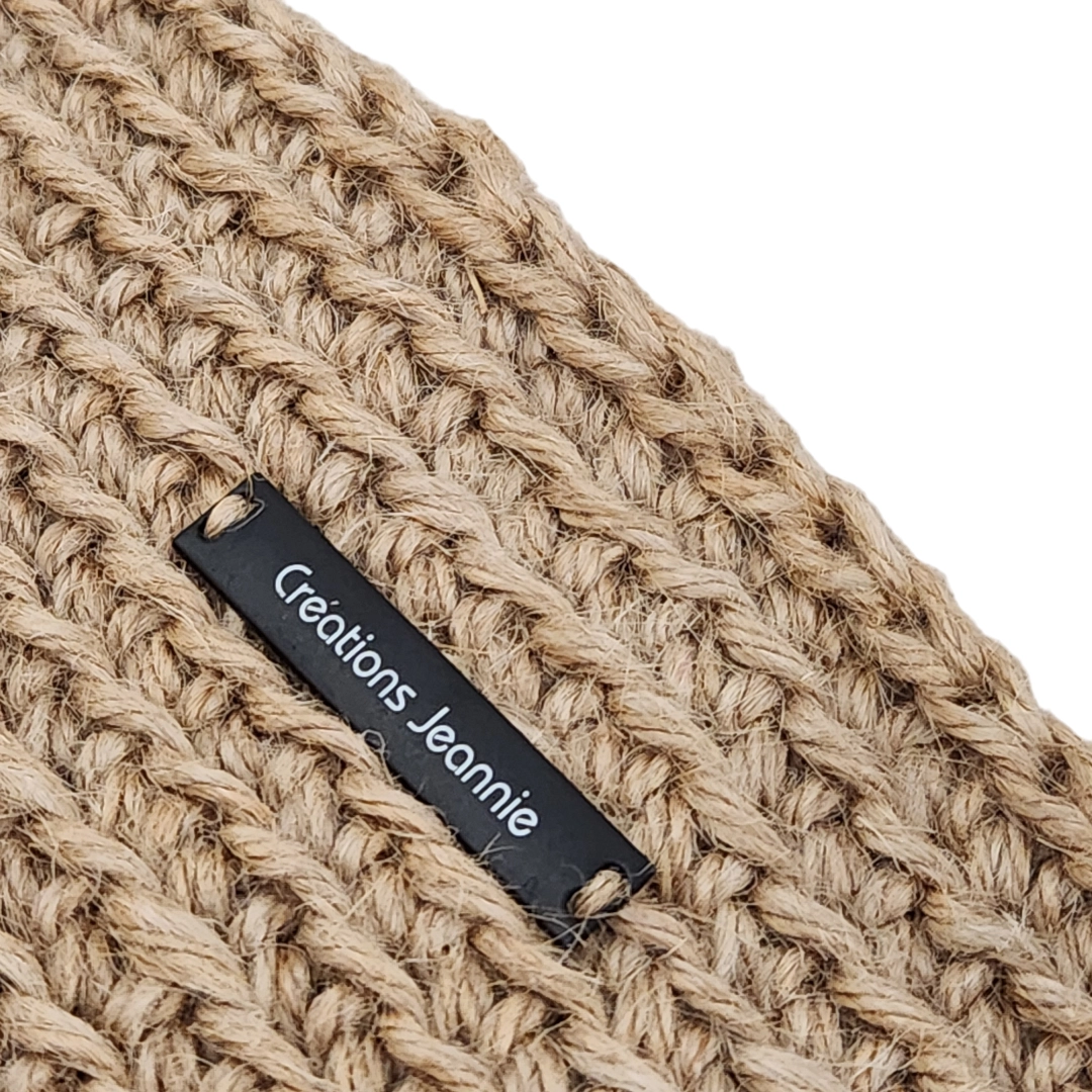 La fibre naturelle de la ficelle peut provoquer de légères variations de couleurs et contenir des impuretés, malgré le soin apporté dans le choix des matières 1ères. De plus, la ficelle peut perdre quelques fibres et dégager une odeur, ce à quoi certaines personnes peuvent être sensibles.